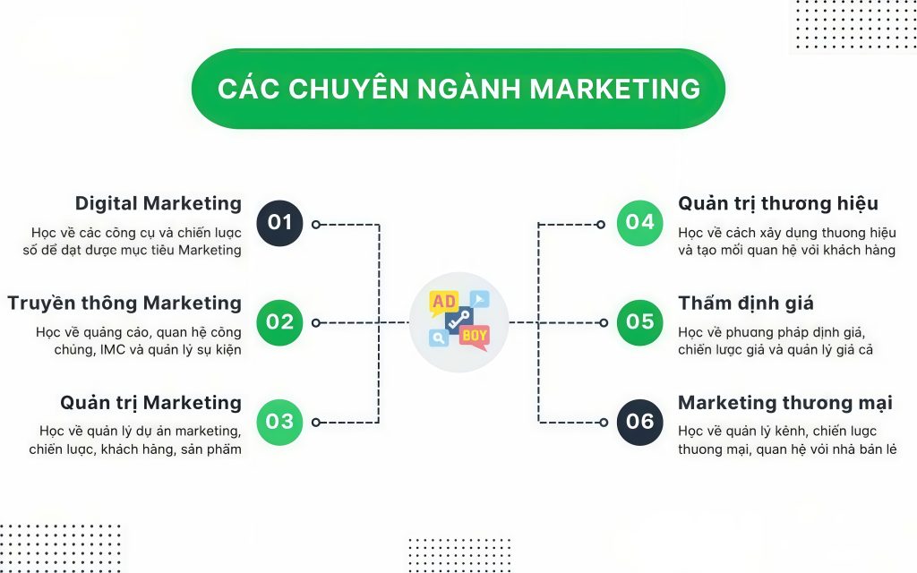Chuyên ngành Quản trị Marketing là một ngành đào tạo chuyên sâu về quản lý và điều hành các hoạt động marketing trong doanh nghiệp. Mục tiêu của ngành này là giúp sinh viên hiểu rõ các chiến lược, công cụ và phương pháp để phát triển, duy trì và nâng cao hiệu quả marketing trong các tổ chức.
