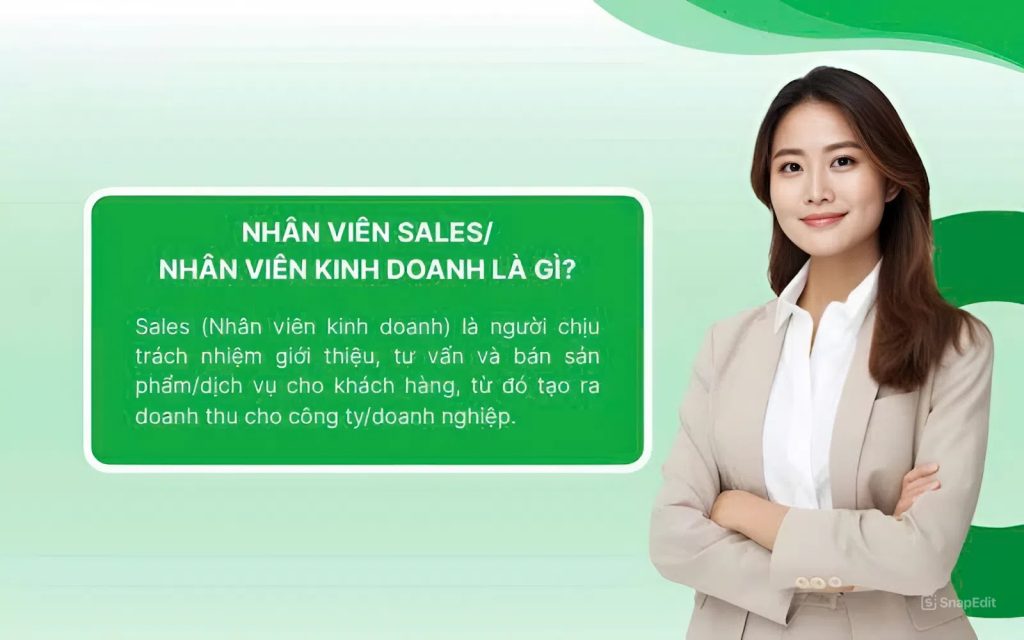 Sales (Nhân viên kinh doanh) là người chịu trách nhiệm giới thiệu, tư vấn và bán sản phẩm/dịch vụ cho khách hàng, từ đó tạo ra doanh thu cho công ty/doanh nghiệp.