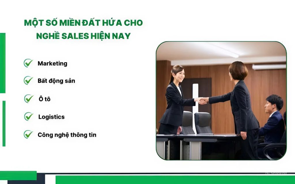 Hiểu rõ hơn về những thị trường tiềm năng cho các cơ hội việc làm Sales sẽ giúp bạn có thể có thêm những thông tin để đưa ra sự lựa chọn phù hợp hơn trong tương lai. Hãy cùng tham khảo một số “miền đất hứa” cho nghề Sales hiện nay.